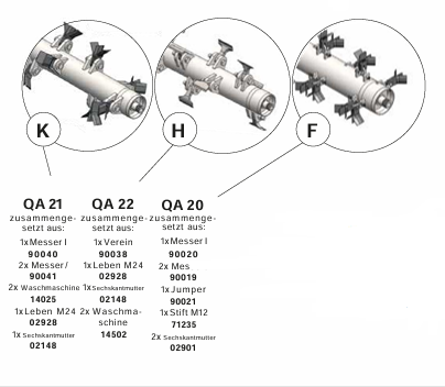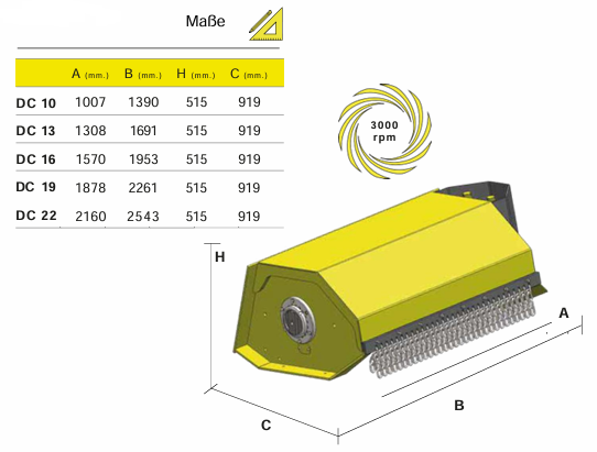 Die Messer sind Y-förmig und ein anderer in der Mitte, um Büsche mit Durchmesser bis 8cm abzuschneiden. Möglichkeit Hammerrotor (außer DA 5x) und einer direkter Aufnahme mit Bolzen oder eines Sattels für SWE.