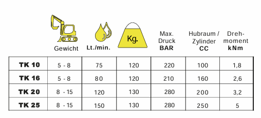 Unsere Erdbohrer Serie TK sind geeignet für den Einsatz an Minibagger mit Gewicht von 5 bis 15 Tonnen.