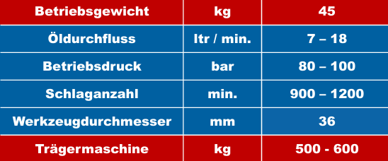 Die hohe Leistung des Hammers ist auch bei einer niedrigen Motordrehzahl der Trägermaschine gewährleistet, was zu einer geringeren Belastung der Bedienmaschine und Einsparungen bei den Kraftstoffkosten führt.