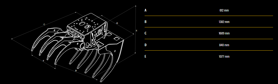 Sind Sie es leid, während der Arbeit ständig die Aufsätze zu wechseln? Oder möchten Sie vielleicht an verschiedenen Projekten arbeiten? Der TMK MultiGrab der F-Serie (Fixed), TMK MultiGrab S-F, wird ohne Rotation geliefert und ist eine gute Wahl für einfache Arbeiten, die keine besondere Beweglichkeit erfordern. Auch wenn Sie bereits einen Neigungsrotator haben, ist der TMK MultiGrab S-F die richtige Wahl für Sie! Derzeit ist der TMK MultiGrab S-F in zwei verschiedenen Rahmenbreiten erhältlich. In der Standardausführung ist der TMK MultiGrab S-F 840 mm breit und wiegt 400 kg ohne Anhängevorrichtung für die Maschine. Der TMK MultiGrab S-F+ mit breiterem Rahmen hat zwei zusätzliche Zinken an seinem stabilen Hauptrahmen. Er ist 1244 mm breit und wiegt 480 kg ohne Anhängevorrichtung für die Maschine.