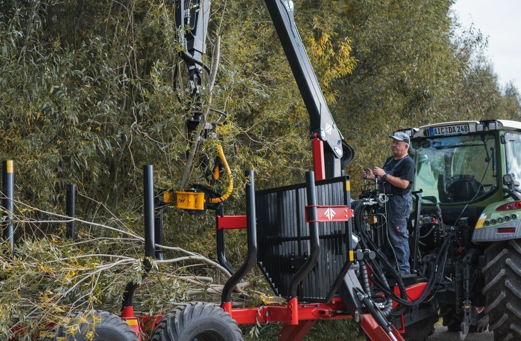 Die TMK 150 ist die kleinste Baumschere von TMK, die sogar mit den kleinsten Maschinen verwendet werden kann. Montiert auf einem Minilader oder Teleskoplader wiegt die TMK 150 nur 85 kg ohne Halterung. Die TMK 150 ist eine äußerst effiziente Möglichkeit, auch kleinere Maschinen für die Energieholzernte, das Freiräumen von Feldrändern oder das Aufräumen rund um ein Ferienhaus einzusetzen.