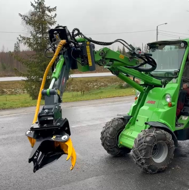 TMK 150 ist eine wendige Schere für kleinere Maschinen. Diese Schere passt zum Beispiel auf 1-4 Tonnen Bagger, Minilader, Forstanhänger oder Traktorkräne. Die 8 mm dicke Grundplatte, hergestellt aus Hardox 500 Stahl, ist geschärft, um als Schneidklinge zu fungieren. Der Rahmen der Schere besteht aus Hardox 400 Stahl, also lassen Sie sich nicht von dem niedlichen Aussehen täuschen; diese Schere ist für echte Arbeit gemacht und kann bis zu 150 mm dicke Bäume schneiden. TMK 150 ist eine großartige Möglichkeit, kleine Bagger, Minilader oder Traktorkräne für effiziente Biomasseernten, Straßenrandreinigungen oder einfach zum Aufräumen Ihres Gartens zu nutzen.