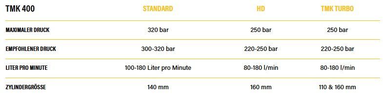- Optimierte Geschwindigkeit und Leistung, wenn die Maschine mindestens 300 bar Druck erzeugt.