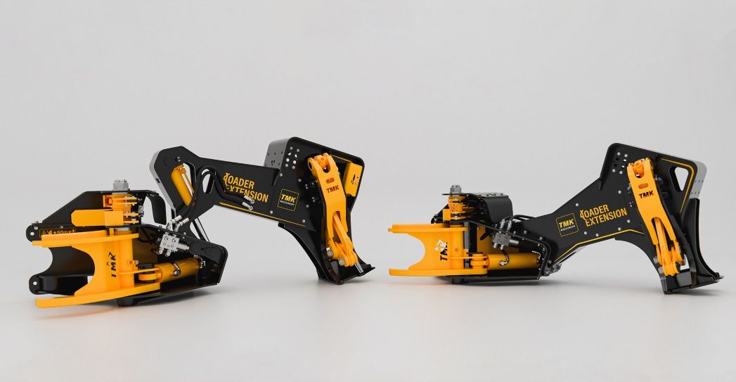 Aber damit ist es nicht getan, mit der Ladererweiterung erhalten Sie viel mehr als nur Lademöglichkeiten! Sie bietet zusätzliche Reichweite für den Baumgreifer und ermöglicht es, einen Tiltrotator weiter zu nutzen und zum Beispiel Schnitte hinter Bäumen zu machen und Haufen an den Seiten zu erstellen, ohne die Maschine zu bewegen. Sie dient auch als sehr stabile Ferse, die Sie verwenden können, um Steine oder Bäume, die im Weg sind, anzustoßen und die Maschine beim Bewegen zu unterstützen.